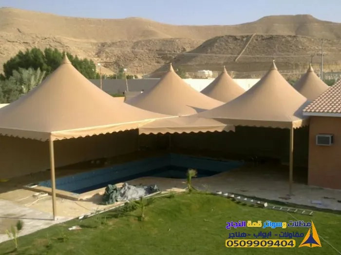 خدمات تركيب حداد مظلات الرياض تشمل كافة أنواع المظلات: هرمية، مخروطية، ومثلثة. يتم التركيب بواسطة فريق متخصص يضمن ثبات الهيكل والقماش في جميع الظروف الجوية، سواء كان المكان معرضًا للرياح القوية أو أشعة الشمس المباشرة.