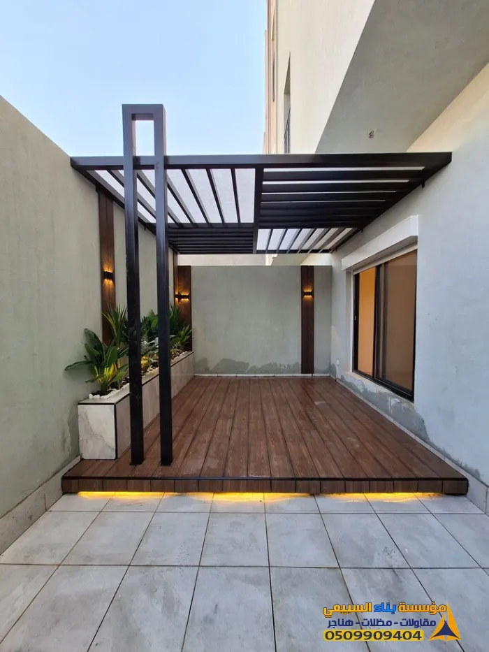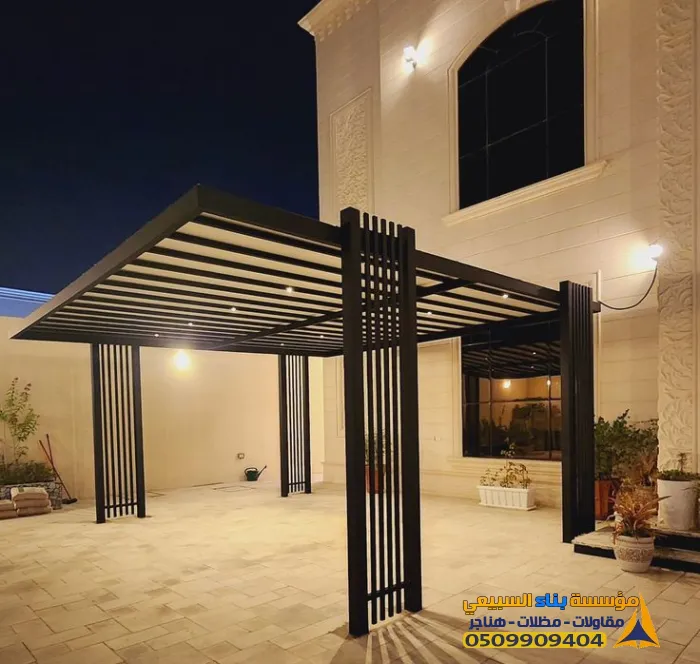 برجولات حديد مودرن: تصميم أنيق بخطوط مستقيمة، يتحمل أجواء الرياض.
